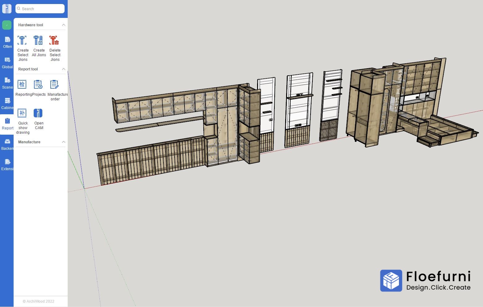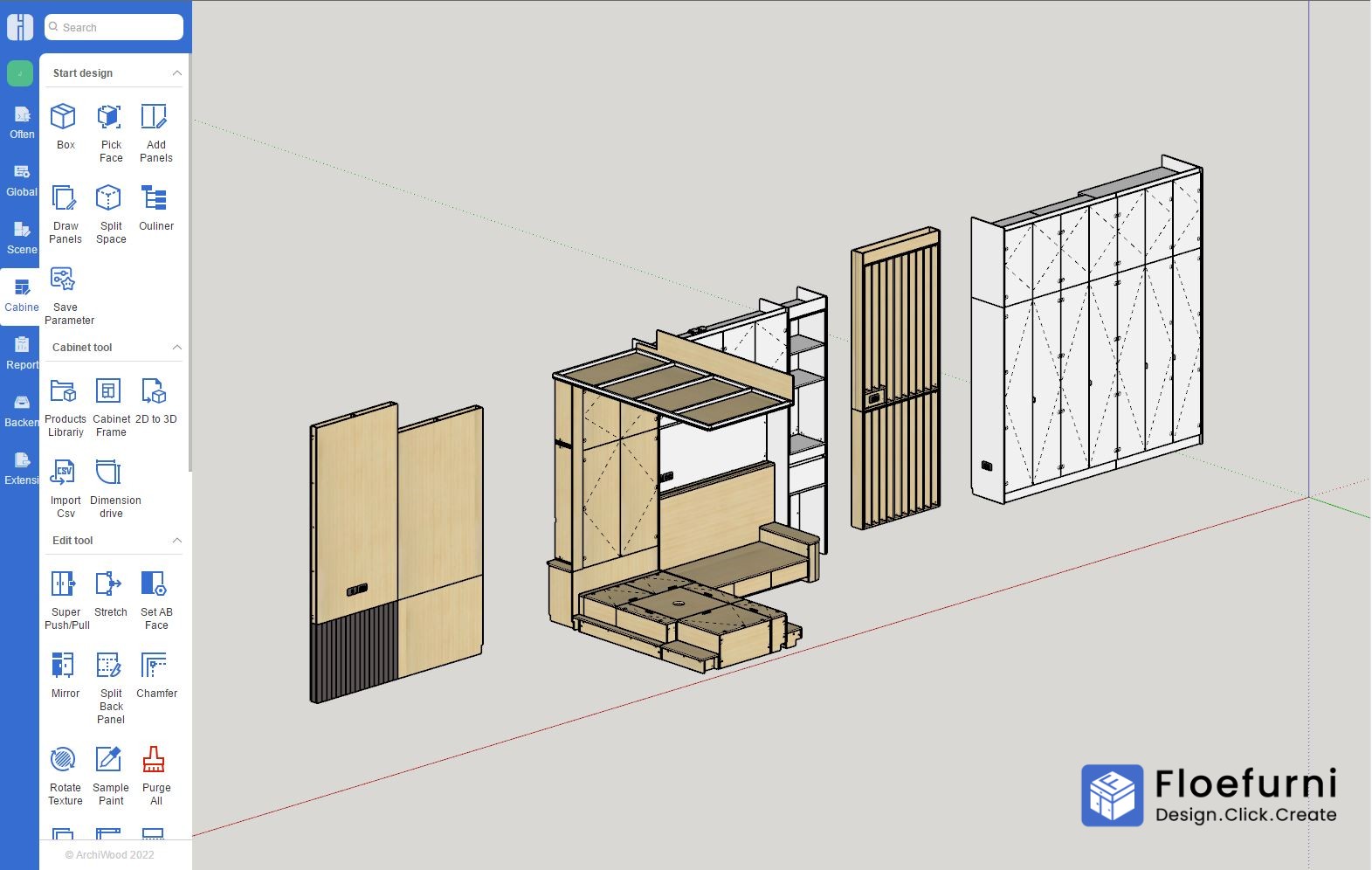 Floefurni is a software tool designed to work on the SketchUp Platform, expanding its capabilities to streamline the design-to-production process for custom furniture.
